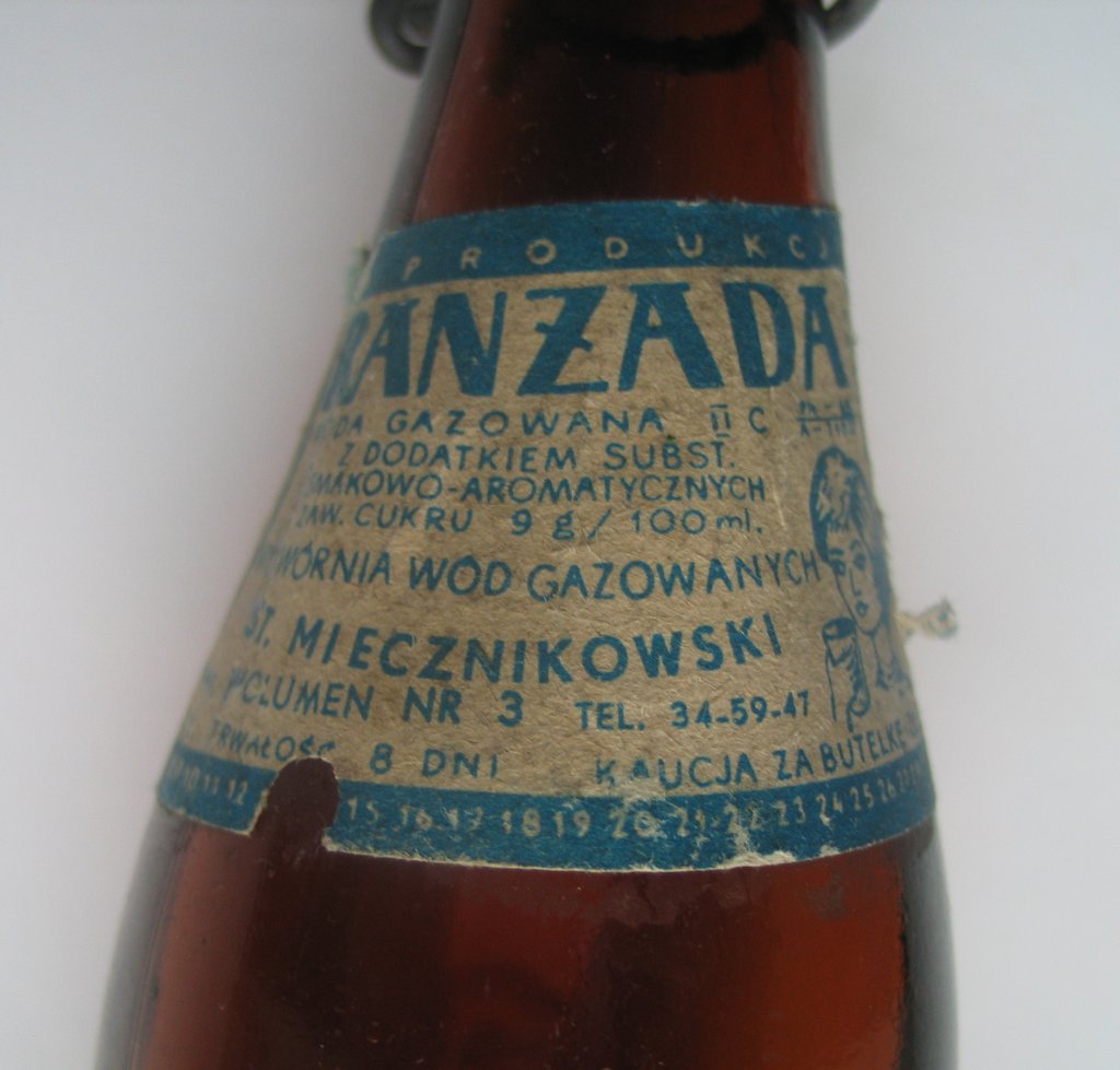 Drugi napój to Oranżada z Wytwórni Wód Gazowanych St. Miecznikowski w Warszawie. Trwałość napoju to zaledwie 8 dni. Ponieważ była kaucja za butelkę (3zł) można było ją wielokrotnie uzupełniać. Etykieta przyciągała rysunkiem pani z napojem.