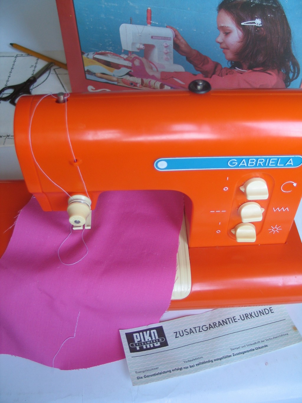 Nasza nazywa się Gabriela, ale Piko produkowało też mini maszyny do szycia o imionach Michaela czy Petra. Egzemplarze różnią się kolorami, bywają na przykład żółte.