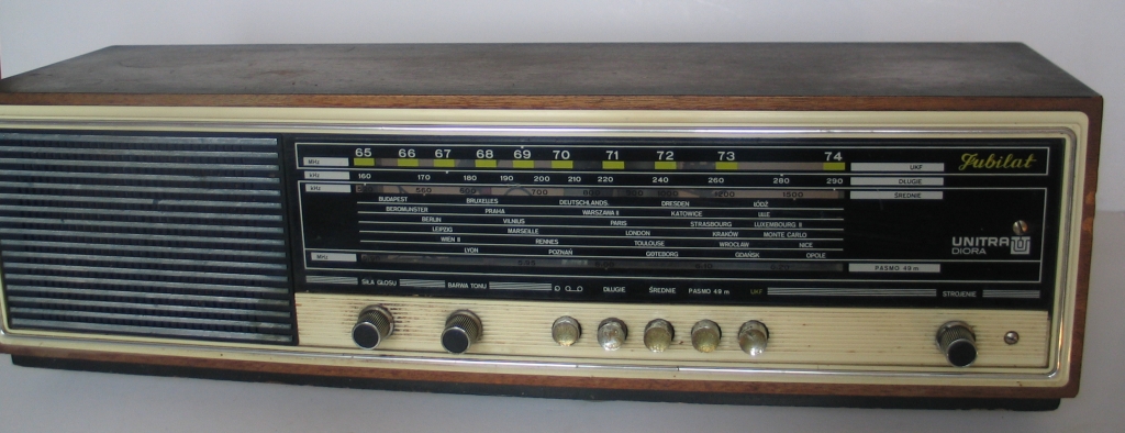 a, hahah, było jeszcze takie radio z gabarytowej rodziny powyższych, z podświetlaną skalą, na której były kontynenty! Bylo u mnie w domu kiedyś, ale nie pomnę „czyje” było – unitry? nie pamiętam. Stało w kuchni i lubiłam słuchać go po ciemaku 🙂