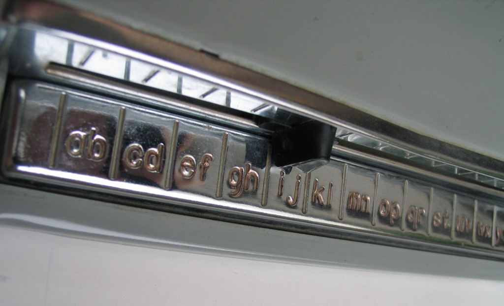Z przodu na metalowej części wybite są litery alfabetu. Przesuwa się po nich czarnym elementem. Po zatrzymaniu na wybranej literze naciskamy metalowy element i otwiera się nam notatnik.