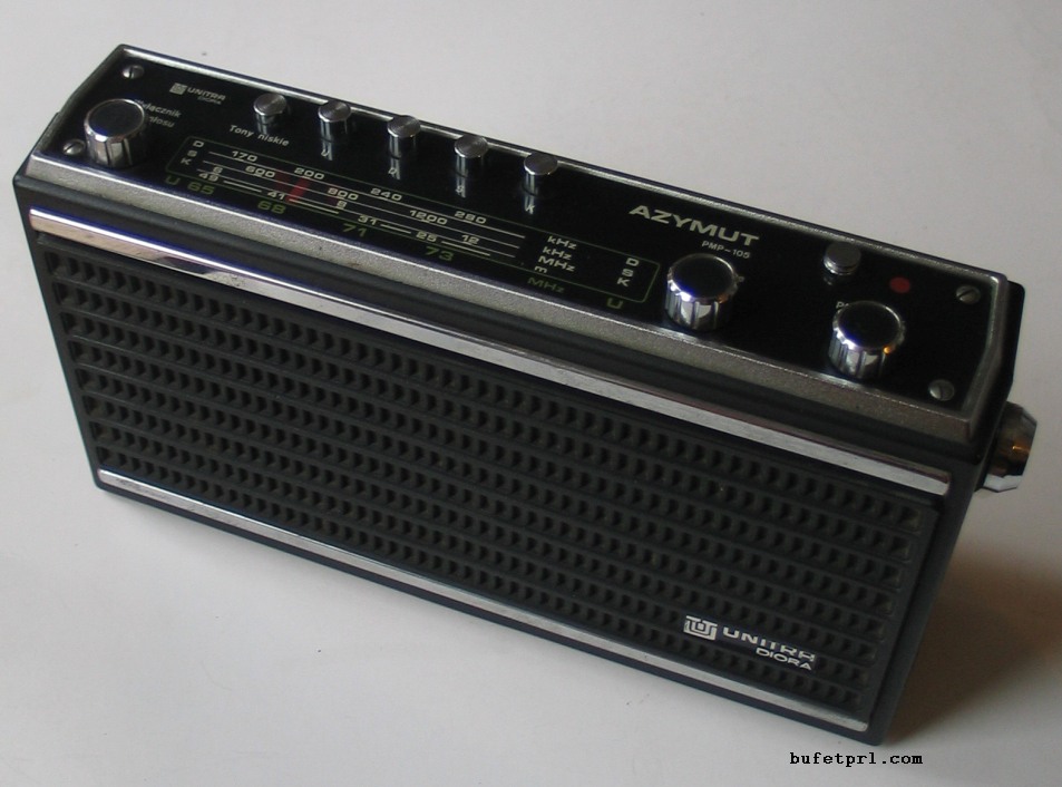 Das „Azymut PMP-105″ wurde um 1978 in Dzierzoniow produziert. Es empfängt das UKW-Band von 65,8 – 74 MHz, Kurz-, Mittel- und Langwelle über die integrierte Ferrit- und Teleskopantenne – m.in. takie informacje o radioobiorniku, który jest dzisiejszym bohaterem podaje niemiecka strona o przeróżnym sprzęcie sprzed lat www.rft-hifigeraete.de.