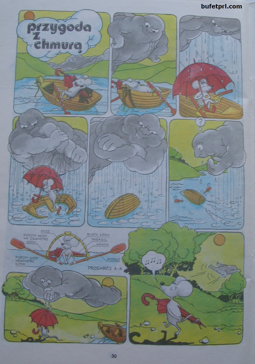 Dalej jest jednostronicowy ukłon dla najmłodszych przygotowany przez Jerzego Niemczyka (scenariusz) oraz Joannę Sedlaczek (rysunki), pracująca przy „Świerszczyku” oraz filmach animowanych.