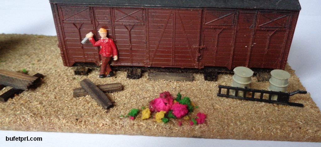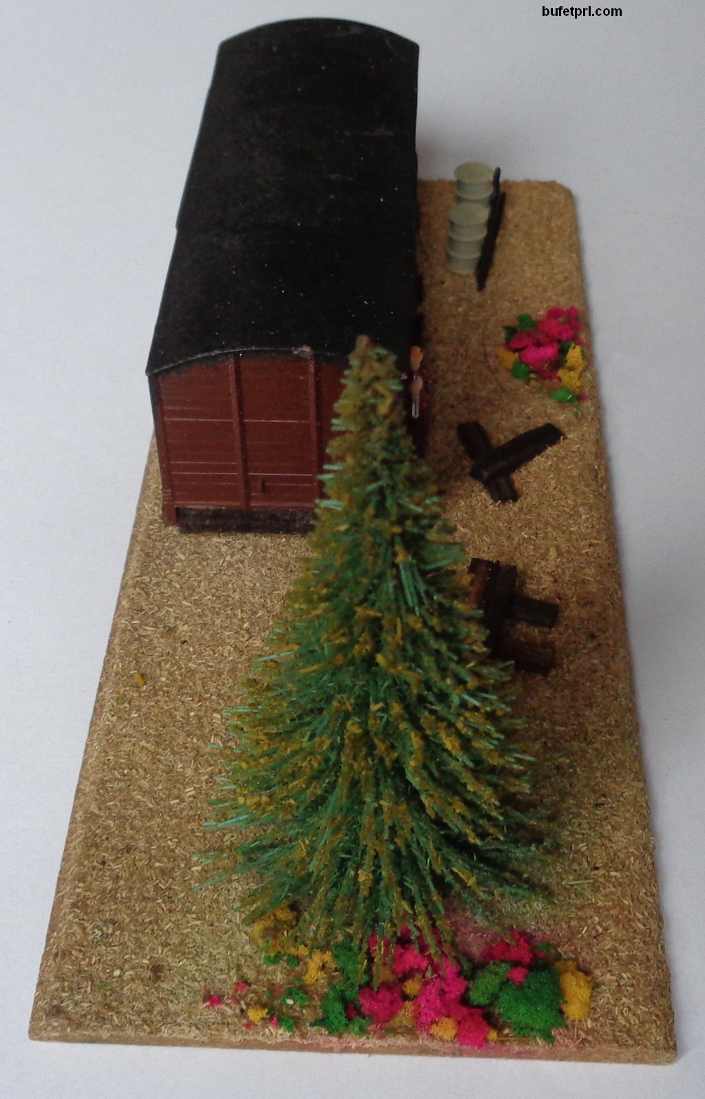 Jest w zasadzie samowystarczalna. Ma bowiem kwiatki, drzewo, podstawę, kawałki drewna, beczki, pracującego pana, no i przede wszystkim wagon.