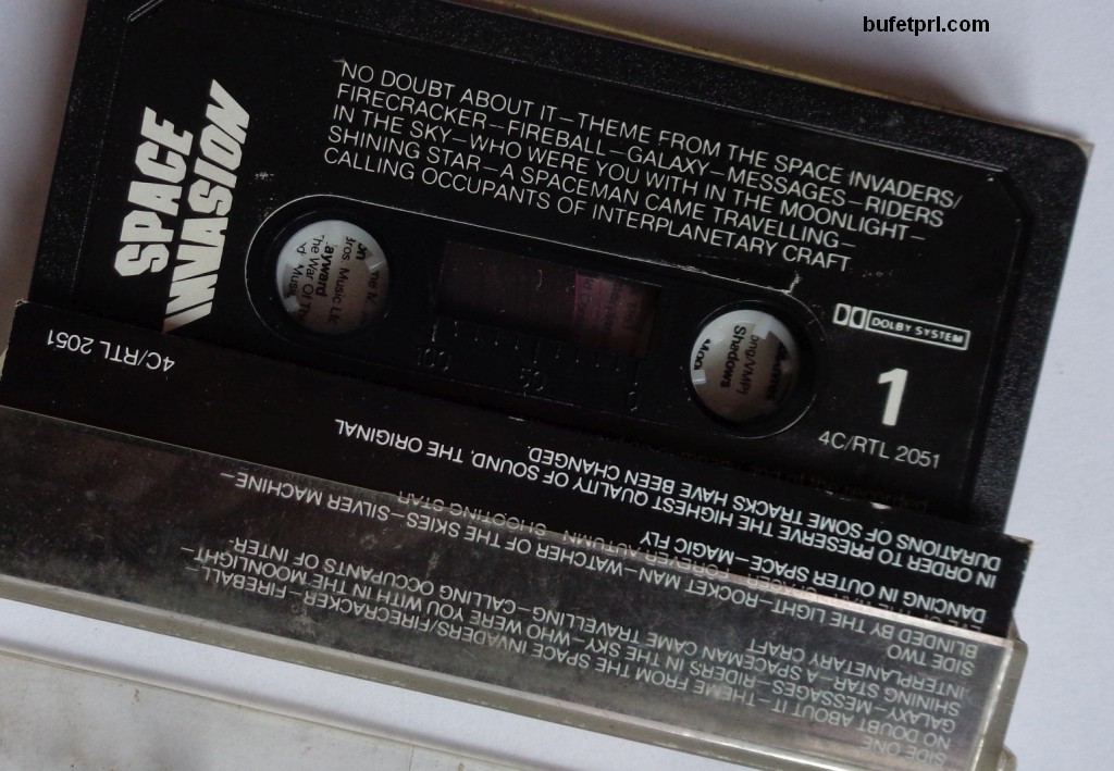 Wydana w 1980 roku kaseta SPACE INVASION zbiera piosenki inspirowane grą albo takie, które według twórców w jakimś stopniu były z nią powiązane. Są tu tacy giganci jak Deep Purple, Elton John, Genesis czy OMD. A wśród piosenek kosmicznie brzmiące „Theme From The Space Invaders”, „Riders In The Sky”, „Dancing In Outer Space” albo „Shining Star”. Pełen zestaw wykonawców poniżej.