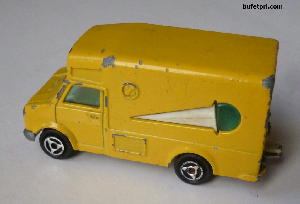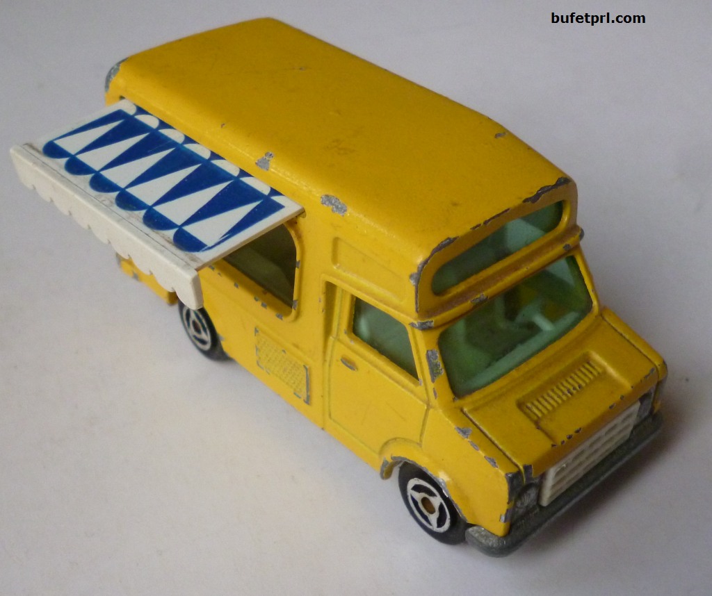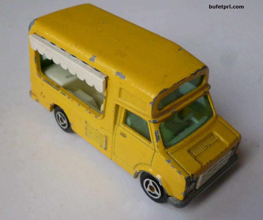 Samochodzik produkowano w różnych kolorach. Z boku ma symbol lodów, a w środku pojemniki z lodami. Jego najpiękniejszym elementem jest wysuwana markiza.