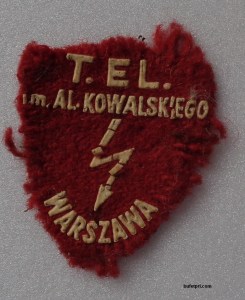 Kolejna tarcza to najbardziej sfatygowany, ale piękny egzemplarz. Pochodzi z Technikum Elektrycznego im Al. Kowalskiego w Warszawie.