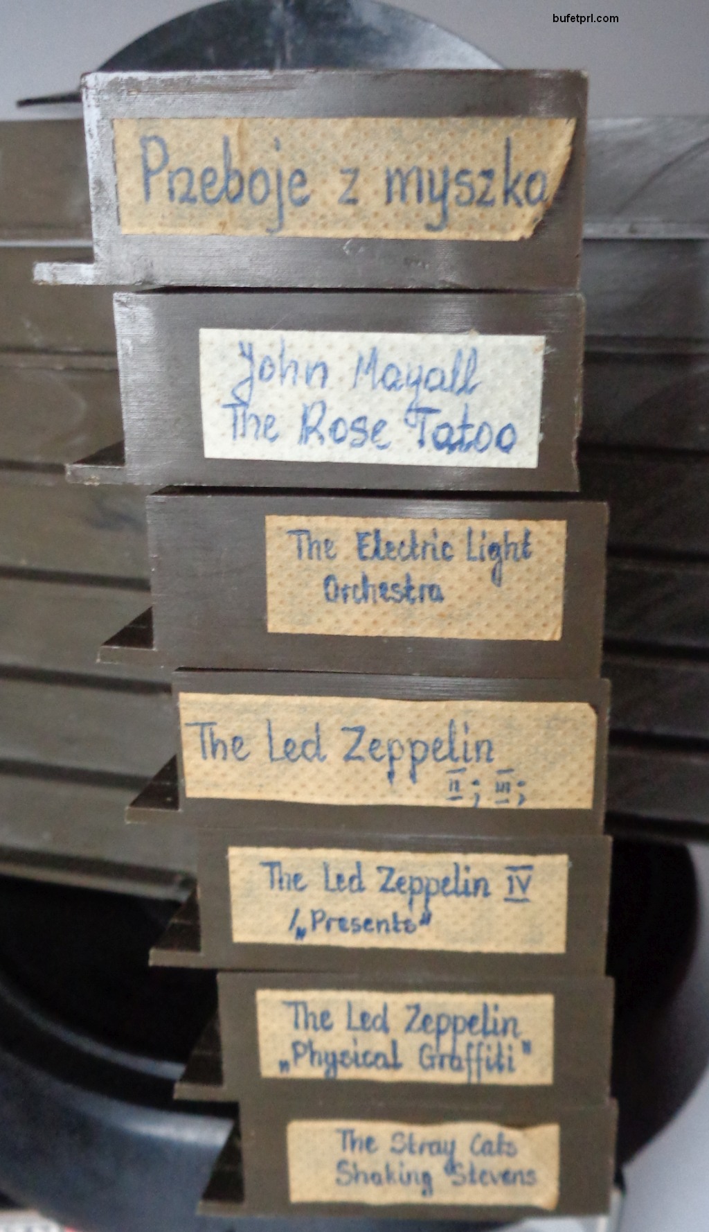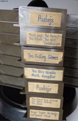 Ale jak takie ładne skarby znalazłem na kocyku u jednego gościa pod halą Mirowską w Warszawie, to nie mogłem się oprzeć. Kupiłem u niego dwa stojaki na kasety i przy okazji 5 ładnych kaset. Ktoś lubił porządek, bo wszystkie miejsca są elegancko podpisane na gustownych plasterkach.