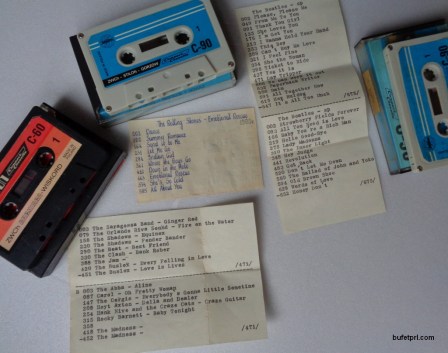 Wybrałem te kasety, bo pokazują, jak wtedy sami bawiliśmy się w dekorowanie kaset. Wycięte zdjęcie z gazety, spis piosenek na maszynie, no i numery kaset.