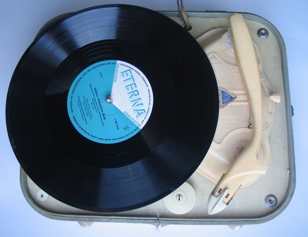 I jeszcze jeden mój własny „wyrób”. Ten oparty jest na monifonicznym gramofonie walizkowym z 1963 roku. Wcześniej wyglądał tak: