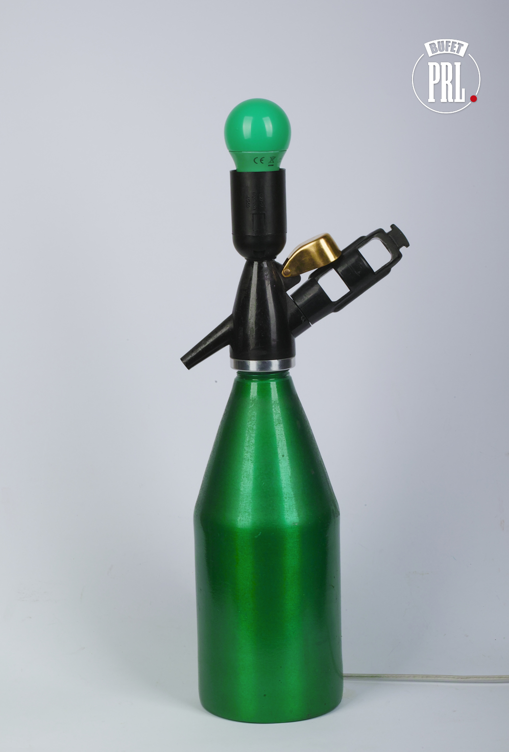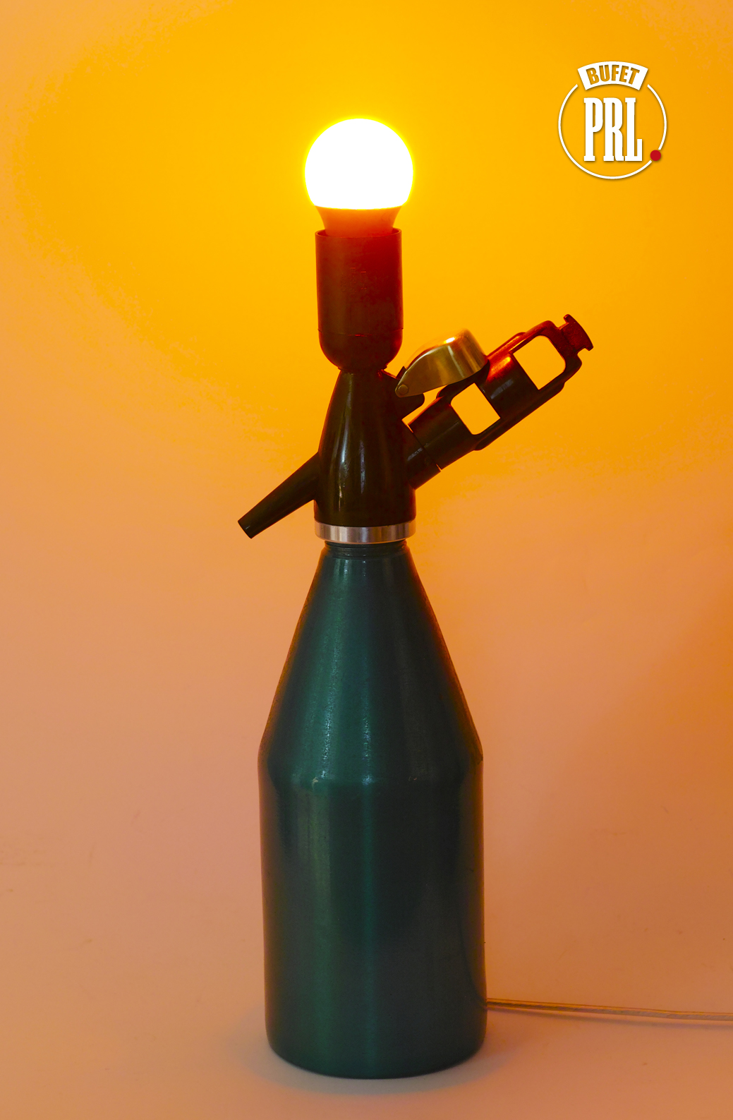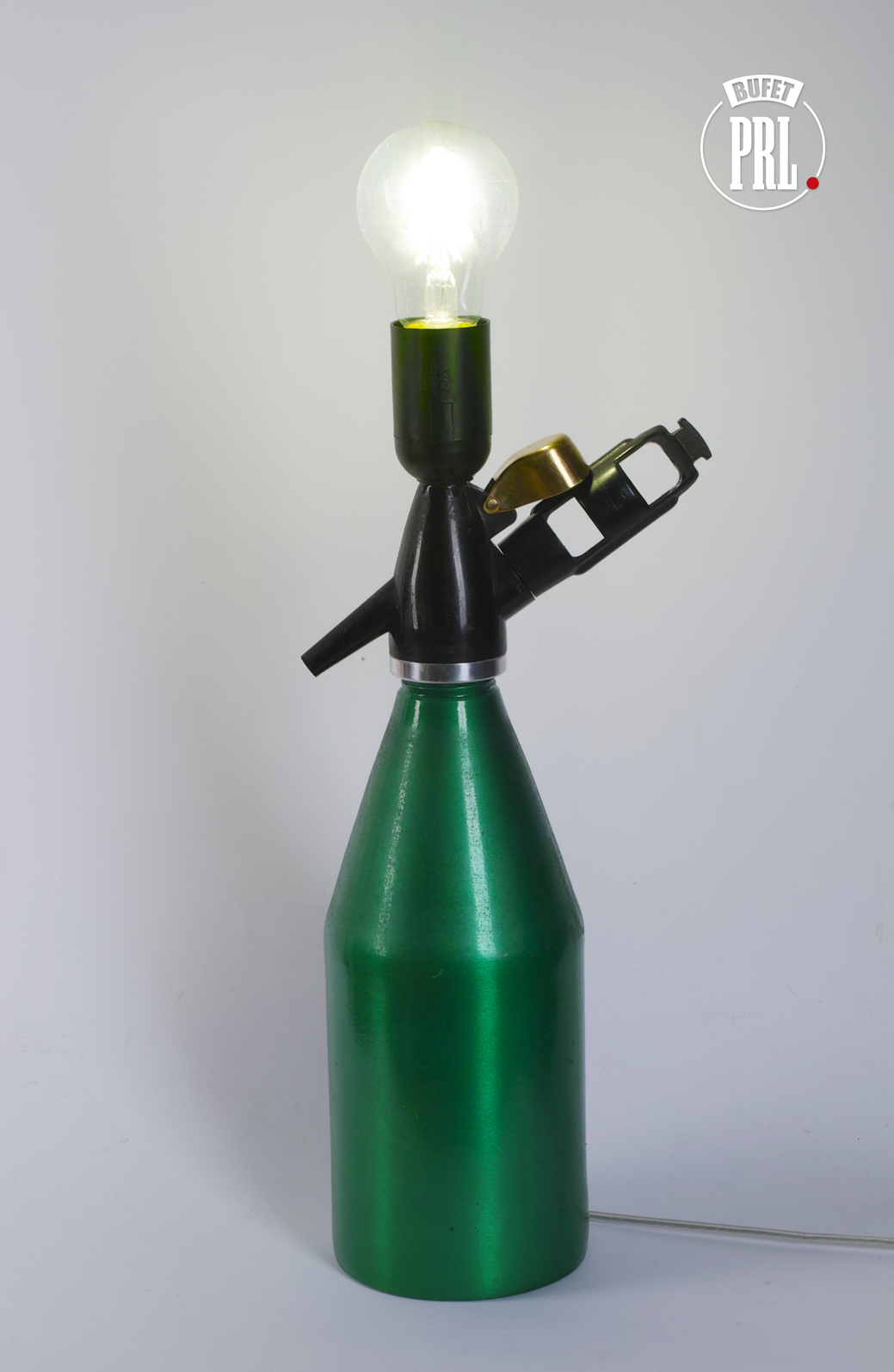 Mi wydał się na tyle piękny… że postanowiłem zrobić z niego niemal dyskotekową lampkę. Oryginalną konstrukcję pozbawiłem zużytego wnętrza, ciężkiego silniczka itp. Z zewnątrz wyczyściłem wszystkie elementy. W miejscu wlotu i wylotu dodałem dwie współczesne żarówki. Całość włącza się, a jakże, przyciskiem włączania odkurzacza. Oczywiście elektryka jest nowa, stare kable nie nadawały się do użycia.