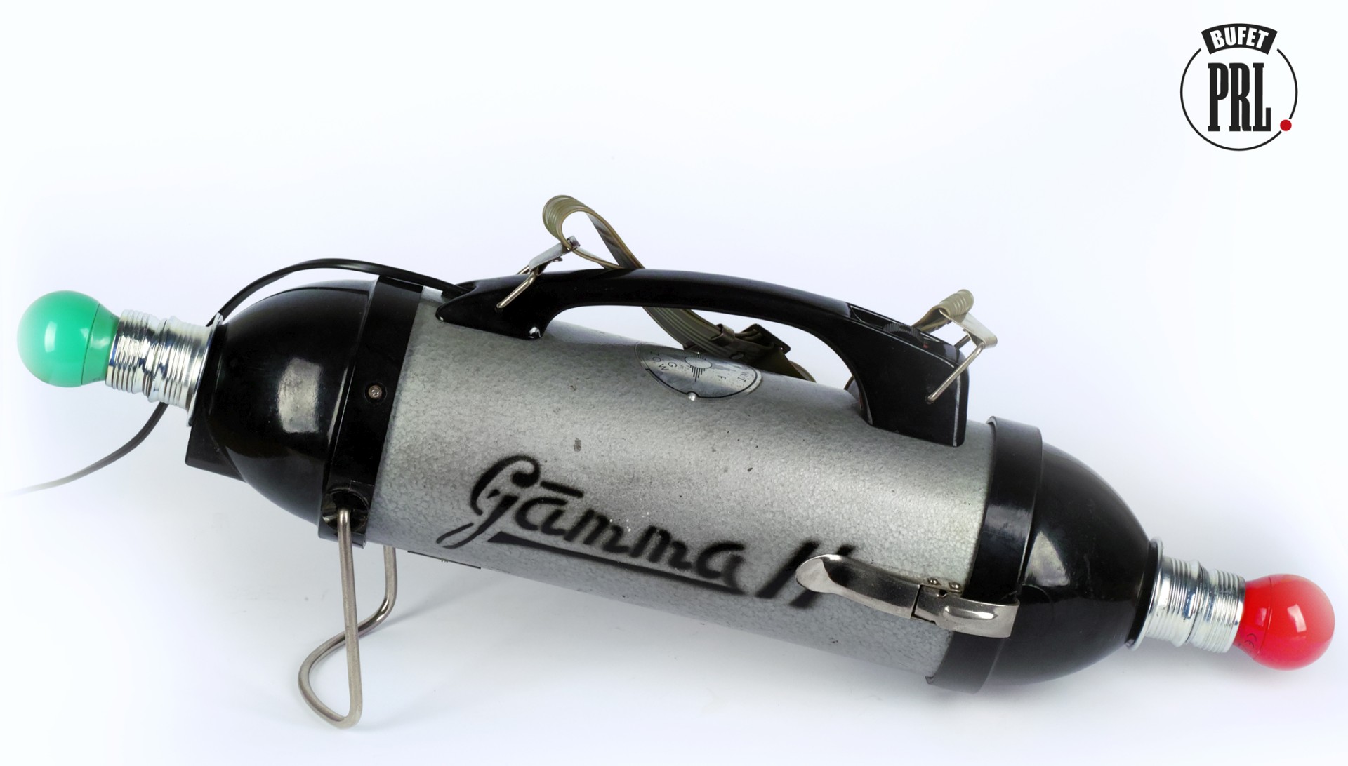 Lampka z zielono-czerwonymi żarówkami zainstalowana w odkurzaczy Gamma II z 1962 roku – to w skrócie. Dowodem ta oryginalna tabliczka na naszym odkurzaczu, którą oczywiście zostawiłem.