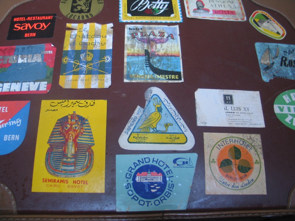 Zawsze przychodzą do cioci podziwiałem je. Może nawet nie same walizki, ale te naklejki na nich. Są dowodem w jak wielu miejscach była. To piękne naklejki hotelowe z różnych stron świata. Od Berlina, przez Kair, po Rzym.