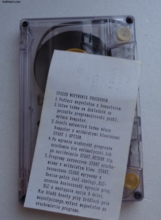 I jeszcze ważna informacja: „nie kładź kasety przy źródłach pola magnetycznego, wyłącz magnetofon po uruchomieniu programu”.