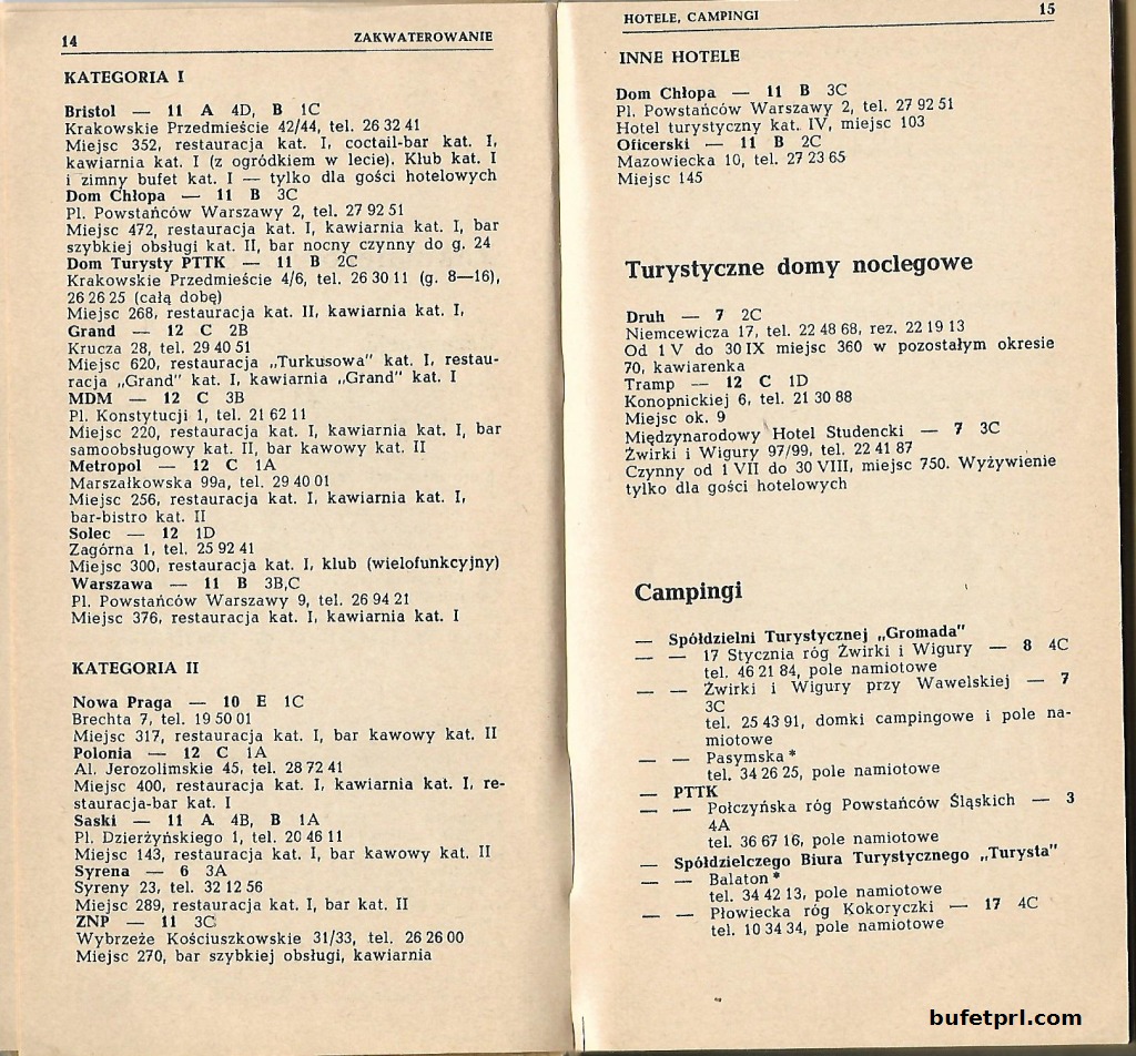 Hotele zostały podzielone na różne kategorie. W kategorii „Lux” są Europejski i Forum. Są również wyszczególnione atrakcje typu coctail-bar, sale bankietowe, kafeteria, bar aperitif, bar Expresso, a nawet Sandwich-bar. Ciekawe czy dziś jest tyle atrakcji w Europejskim?