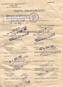 Nasz zestaw zawiera oryginalną gwarancję, która została wystawiona w 1977 roku.