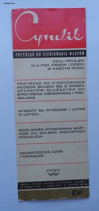 Fryzjer dla pań, panów i dzieci w każdym domu – takim hasłem producent reklamował ten wyjątkowy produkt. Oto Cyrulik – Przyrząd do cieniowania włosów.