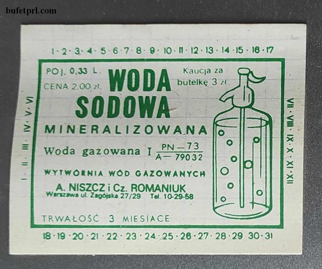 I takie piękne syfony pojawiają się też na etykietach, które ostatnio wpadły do mojej kolekcji. Chodzi o gazowaną wodę sodową, właśnie z wytwórni państwa Romaniuków i Niszczów, czyli „Ronisz”.
