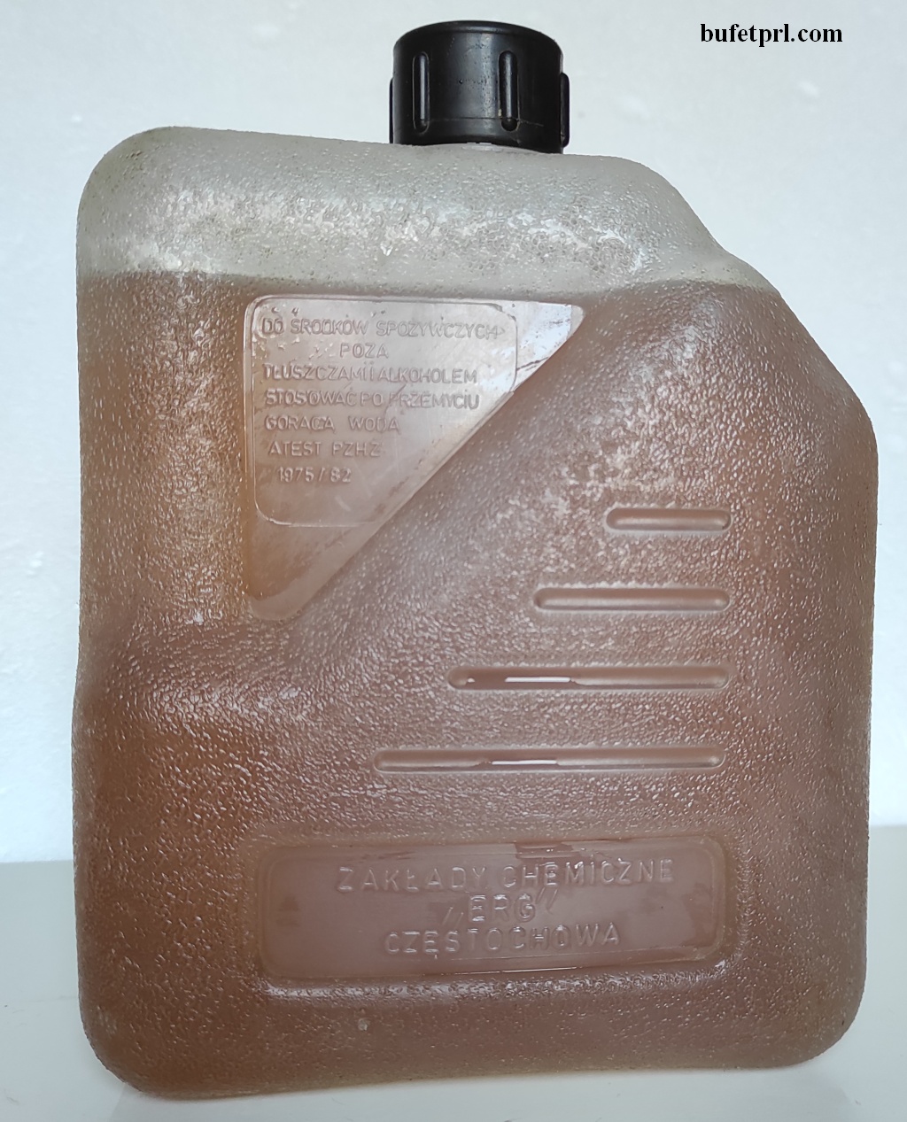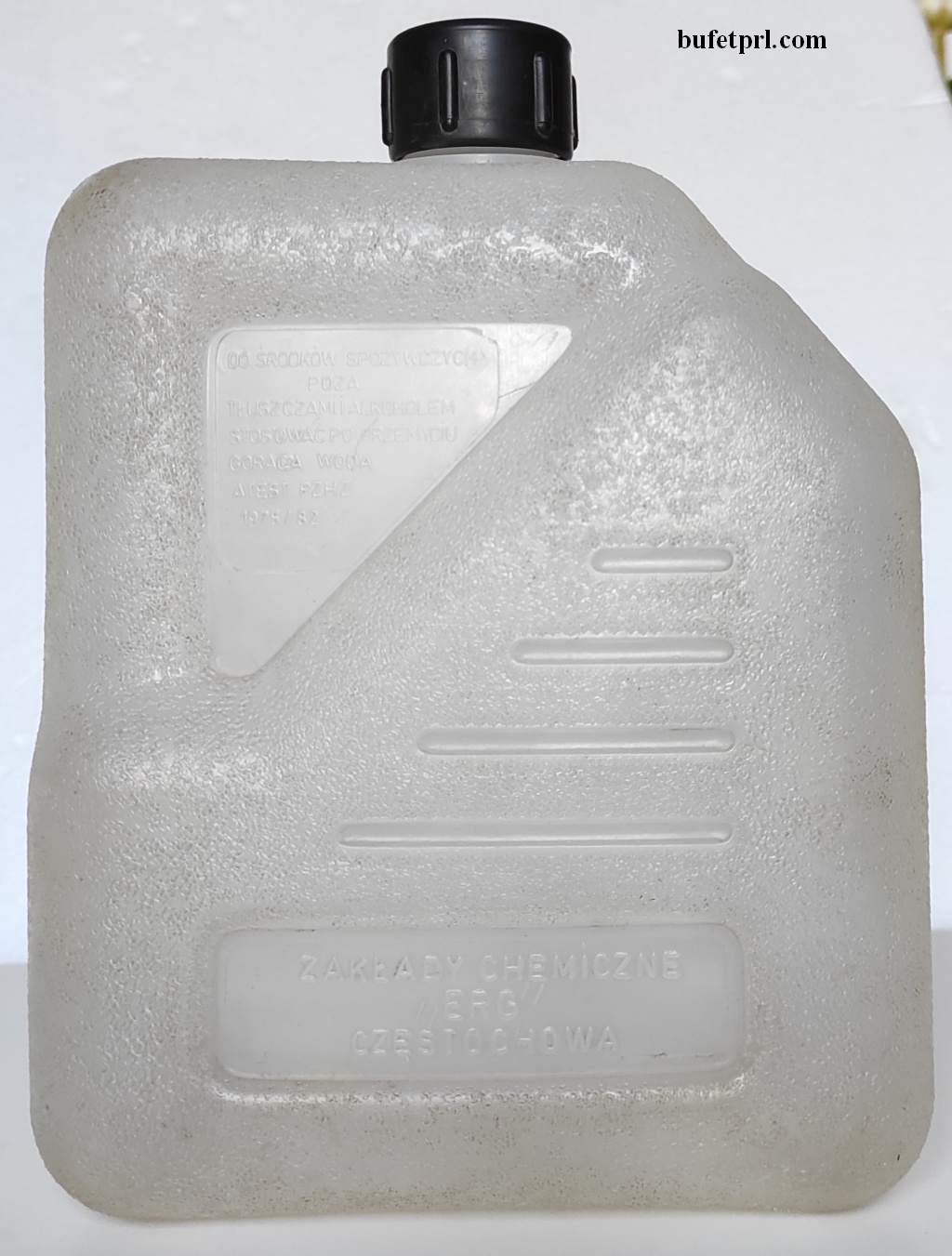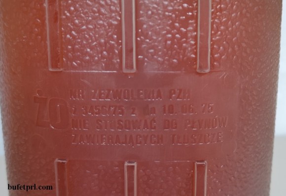 I jeszcze większa rzecz. Baniaczek 2,5 litra. Wyprodukowały go nieistniejące już Zakłady Chemiczne ERG Częstochowa. Ma atest z połowy lat 70.