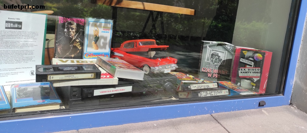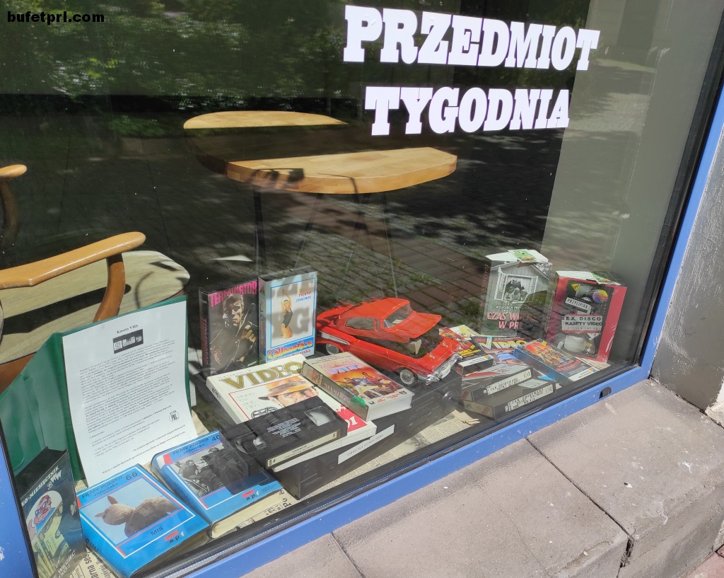 Na warszawskim Muranowie, w oknie Stacji Muranów w pięknej kamienicy przy Andersa 13 możecie zobaczyć (24/7) spoooro gadżetów dotyczących vhsów.