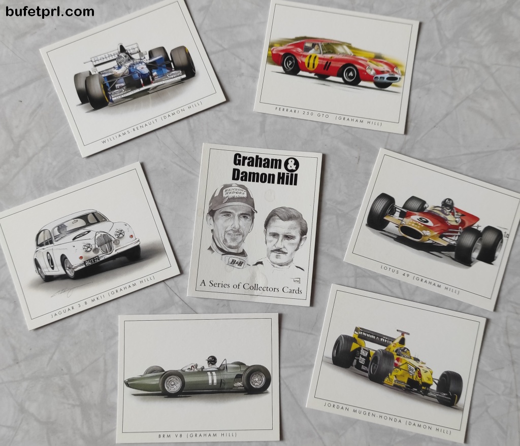 Kolejna seria poświęcona jest rodzinie Hillów, czyli Grahamowi oraz jego synowi Damonowi. Graham był dwukrotnie mistrzem F1, wygrywał też w innych prestiżowych seriach. Damon mistrzem F1 był raz. Te karty pochodzą z lat 90. i to cały komplet.