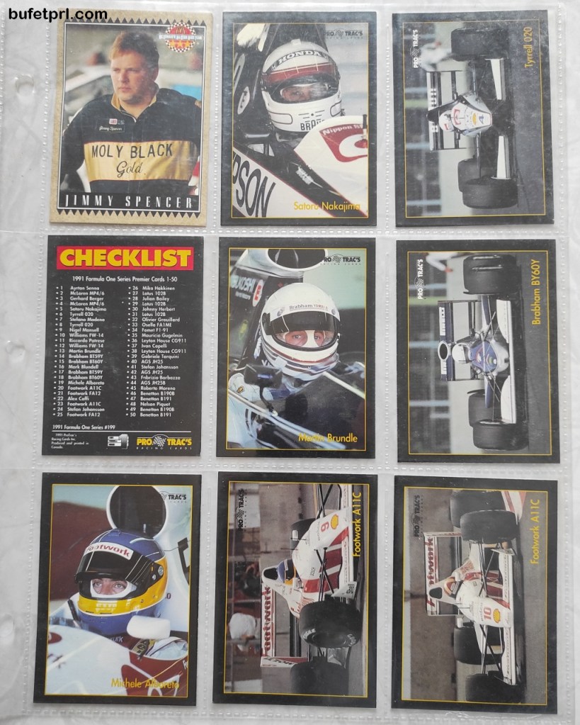 I jeszcze dwa zestawy, z 1991 roku. Przedstawiają kierowców, tory i bolidy wyścigowe tamtego sezonu w F1. Choć trafił się też jeden kierowca Nascar z serii sponsorowanej przez McDonald’s.