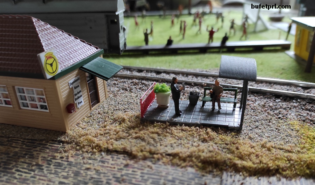Sam zbudowałem wiatę, ale budynek barowy złożyłem z gotowca. Choć trochę go podrasowałem. Zrobiłem znaczek PKS, menu, daszek itp.