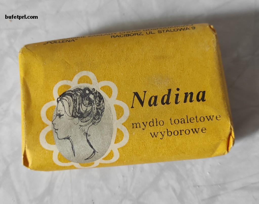 Jak głosi napis jest to mydło toaletowe popularne, choć jak bardzo tego nie wiem. Wiem, że ładne jest opakowanie z pomarańczą, a producent to Raciborskie Zakłady Chemii Gospodarczej Pollena. Tak jak kolejnego mydła wyborowego Nadina. Rysunek (trochę jak przedwojenny) pięknej pani miał pewnie do niego przekonać przede wszystkim kobiety.