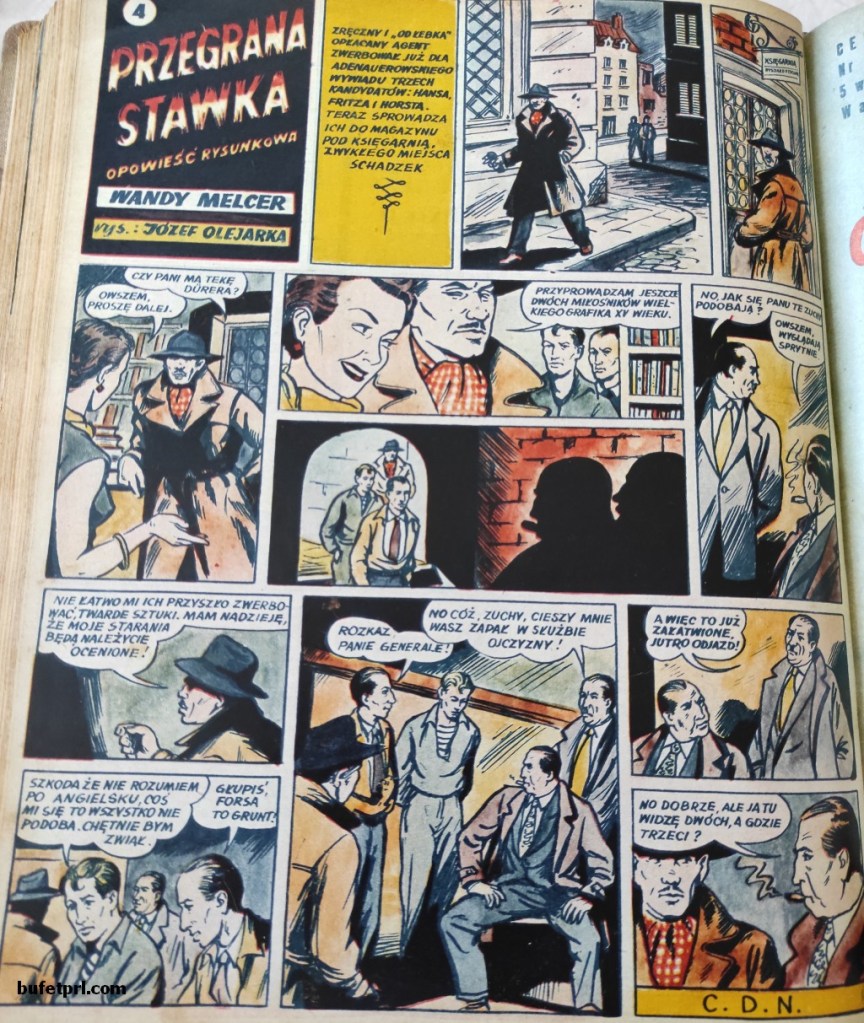 Pojawia się tu dużo zagranicznych elementów, na przykład papierosy Camel. Za rysunki odpowiada tu Józef Olejarka. I kadry bywają nawet ciekawe.