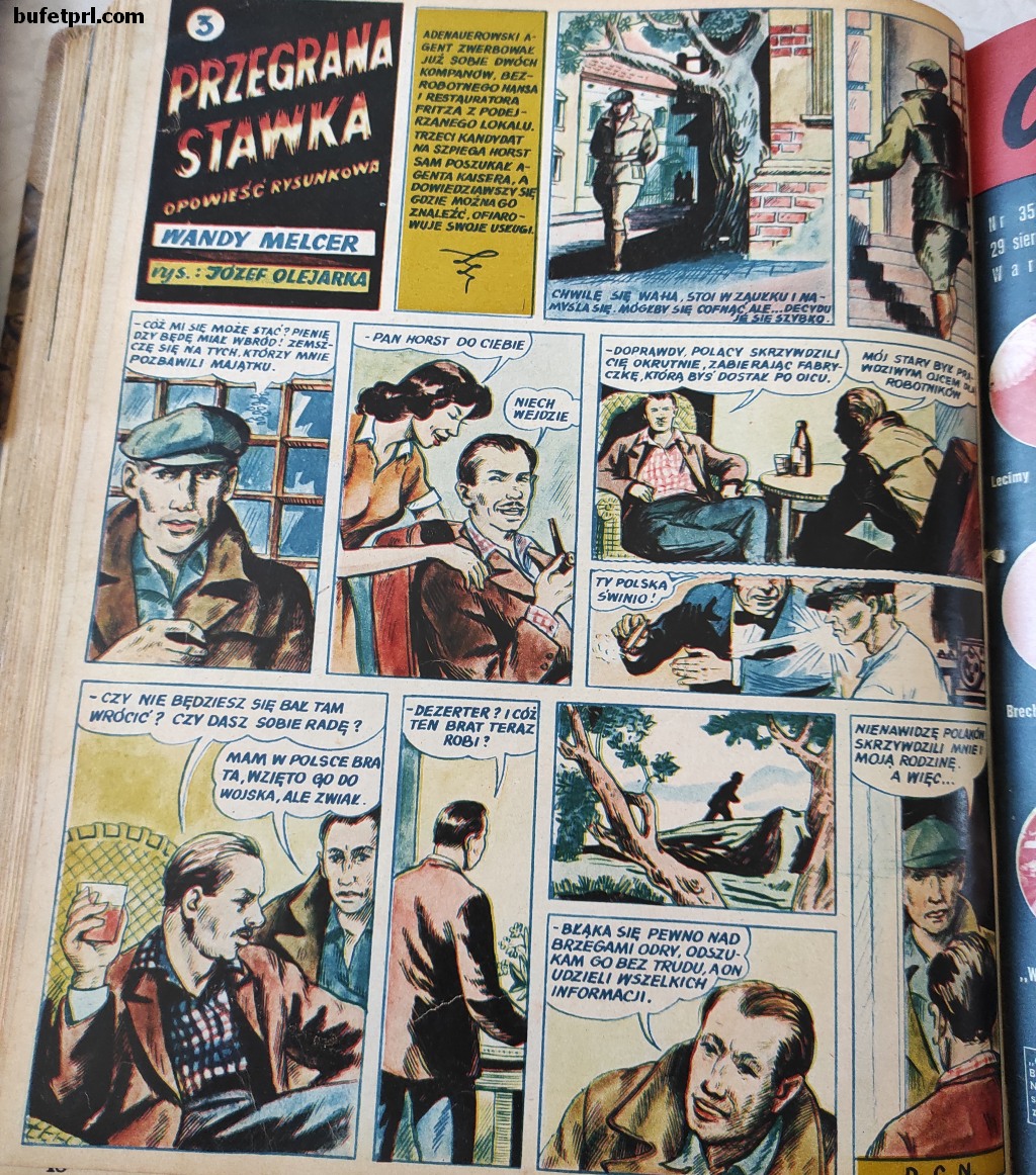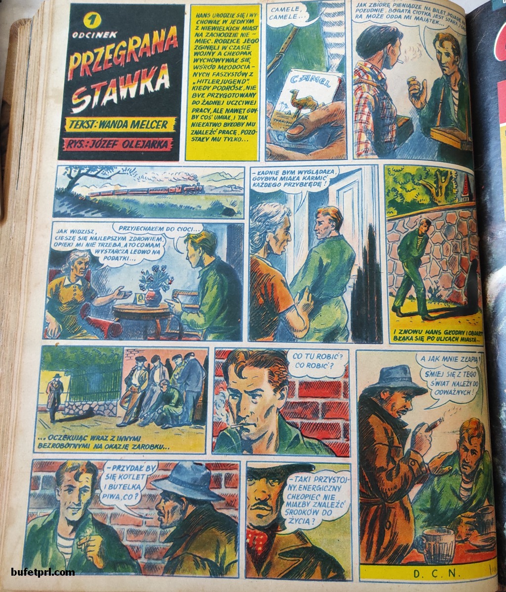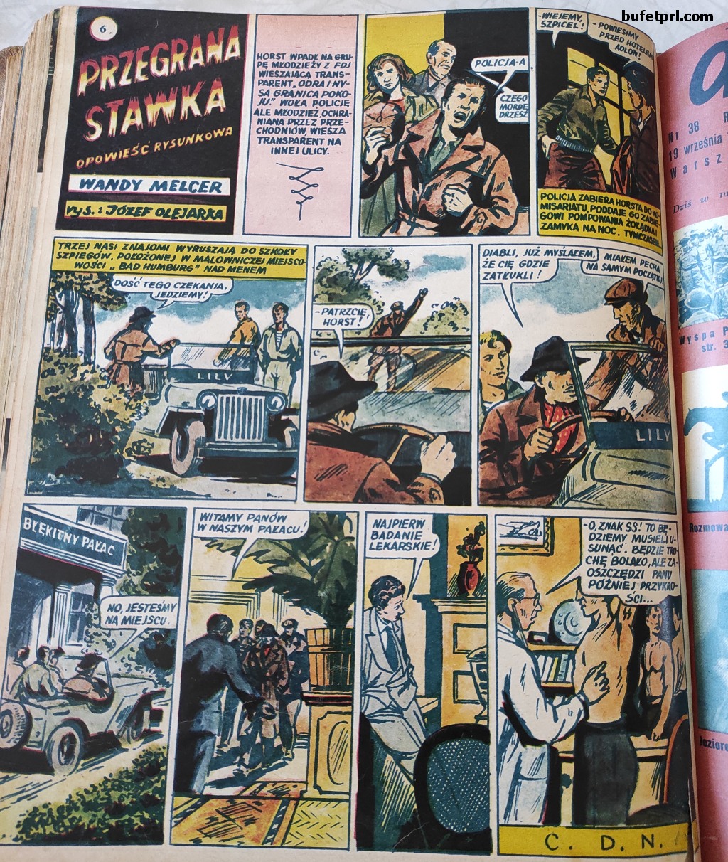 Pojawia się tu dużo zagranicznych elementów, na przykład papierosy Camel. Za rysunki odpowiada tu Józef Olejarka. I kadry bywają nawet ciekawe.