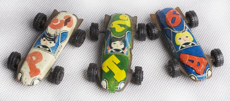 Dwa autka są produkcji radzieckiej. Tu zagadka. Napis „nочма” pokazuje mi jako tłumaczenie z języka kirgiskiego jako „numer”. Czyżby pochodził z jakiejś kirgiskiej fabryk zabawek?