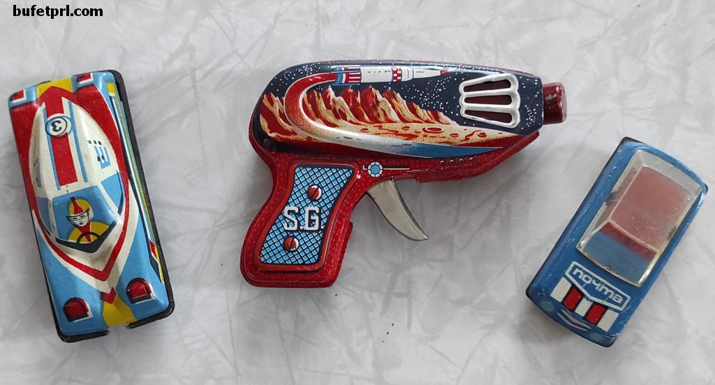 I jeszcze zabawka bardziej współczesna. Japoński pistolet metalowy. Strzela!