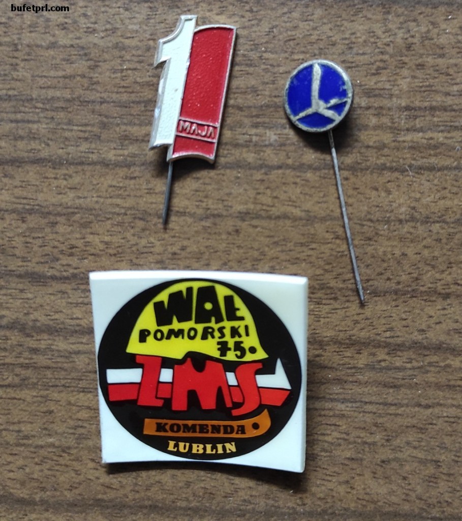 Pierwszy zestaw to 3 oryginalne znaczki: LOT-u, z okazji 1 Maja oraz z okazji rajdu Wał Pomorski z 1975.