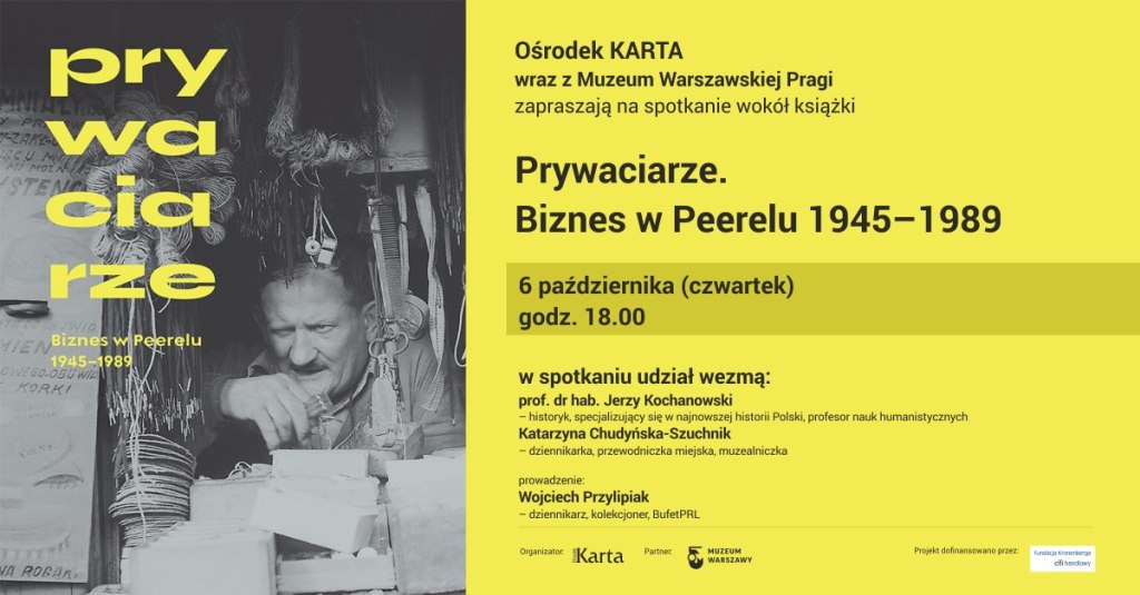 „Cały ustrój stał na złodziejstwie. Żadna prywatna inicjatywa nie mogłaby istnieć na legalnych surowcach, bo ich nie było. Właśnie dlatego została później zniszczona” – m.in. takie stwierdzenie pada w świetnej książce „Prywaciarze. Biznes w Peerelu 1945-1989” wydanej przez Ośrodek KARTA. Wiem, że świetna, bo przeczytałem i bardzo się cieszę, że mogę polecić Wam samą książkę, ale też spotkanie wokół niej.