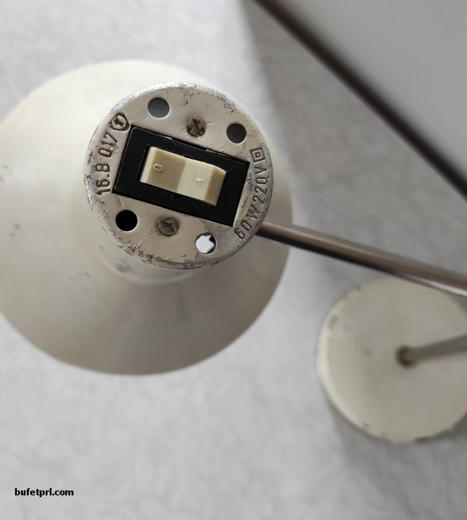 Kiedy do mnie trafiła była w opłakanym stanie, przeczyściłem ją, naprawiłem kabel. Teraz jest w pełni sprawna i działa! To lampa z lat 70. Wyprodukowały ją Zakłady Sprzętu Oświetleniowego „POLAM – WILKASY”, a jej uroczy symbol to 16.B 017.