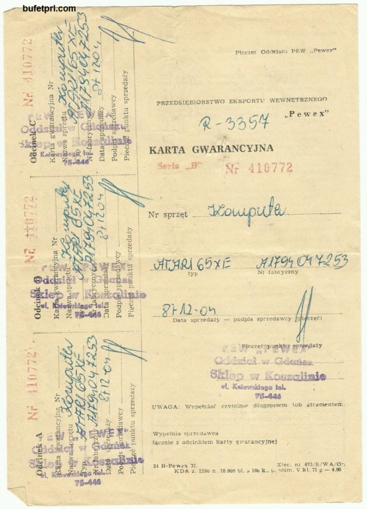 Ja pamiętam wizyty w Peweksie w Słupsku. Oglądałem w nim matchboksy, Lego, ale mam też skarb z jednego z nich. Takie Atari 65xe, które dostałem z bratem w 1987 roku. Kupione w Peweksie w Koszalinie.