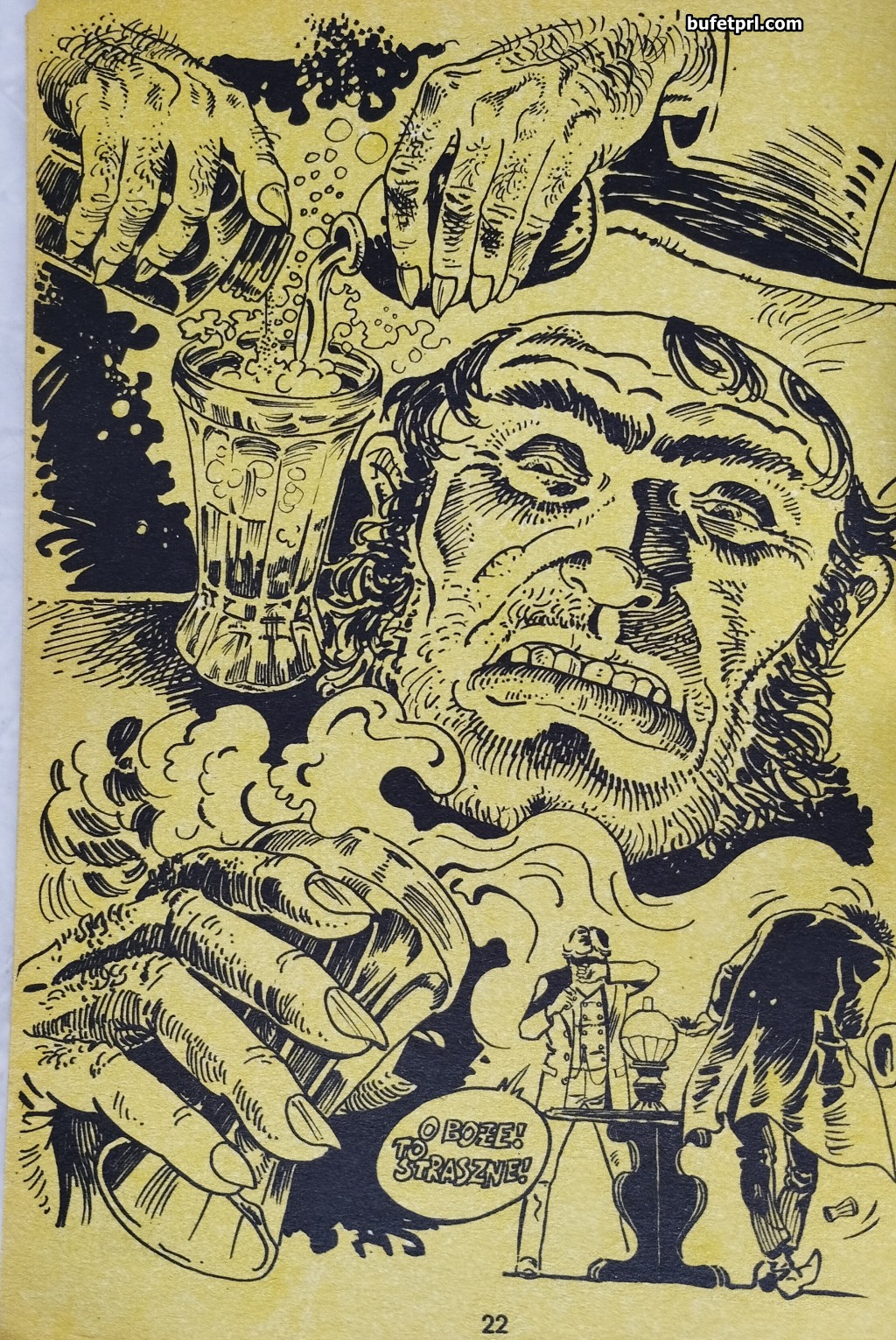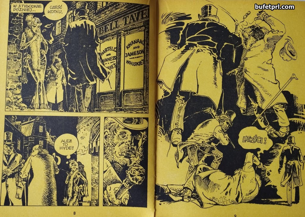 Historia Jekylla/Hyde’a narysowana przez Marka Szyszko z mrocznym Londynem w tle, została wydana w 1982 roku. Jakież tu są mrożące krew grafiki.