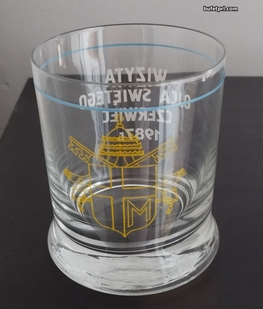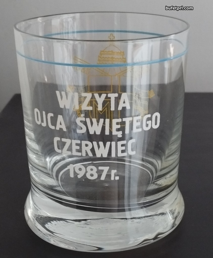 Szklanka wypuszczona na rynek przy okazji trzeciej pielgrzymi papieża w czerwcu 1987 r. I teraz jak myślicie, do czego ona służy? Do oranżady średnio, piwo też, wino nieee… a to przecież whiskaczówka!