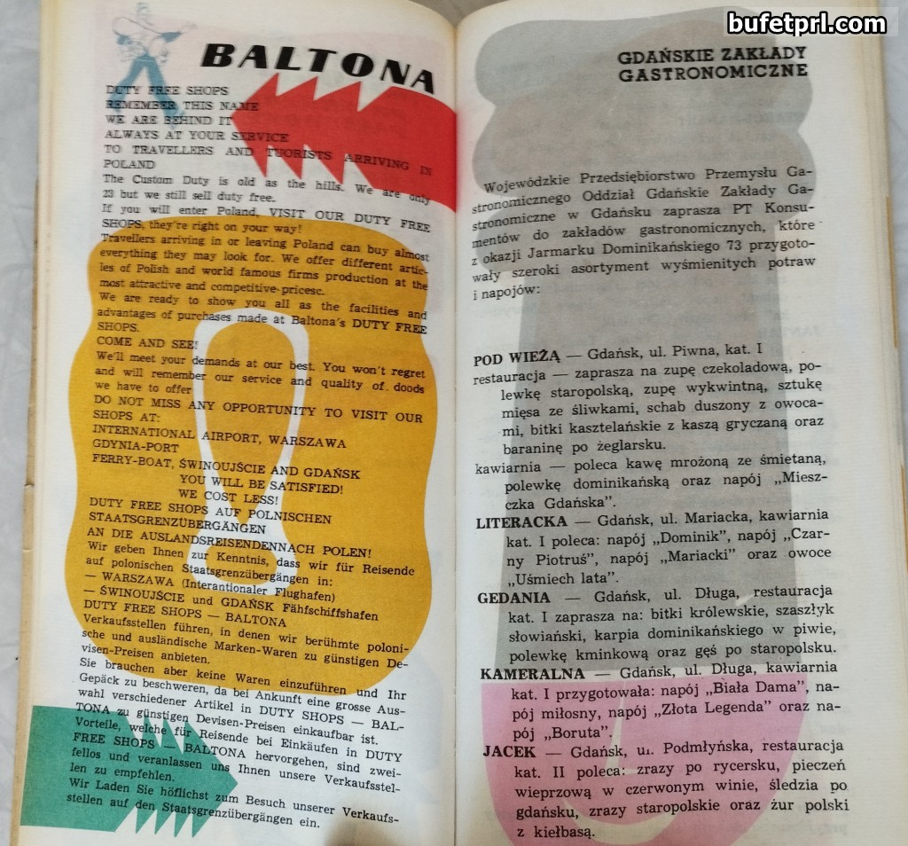 Wiele w nim zdjęć, historii, opowieści, ale – co dla mnie najciekawsze – reklamy wystawców. Ileż tu perełek. Są tu adresy, spisy towarów itp. Na przykład Pewex i Orbis.