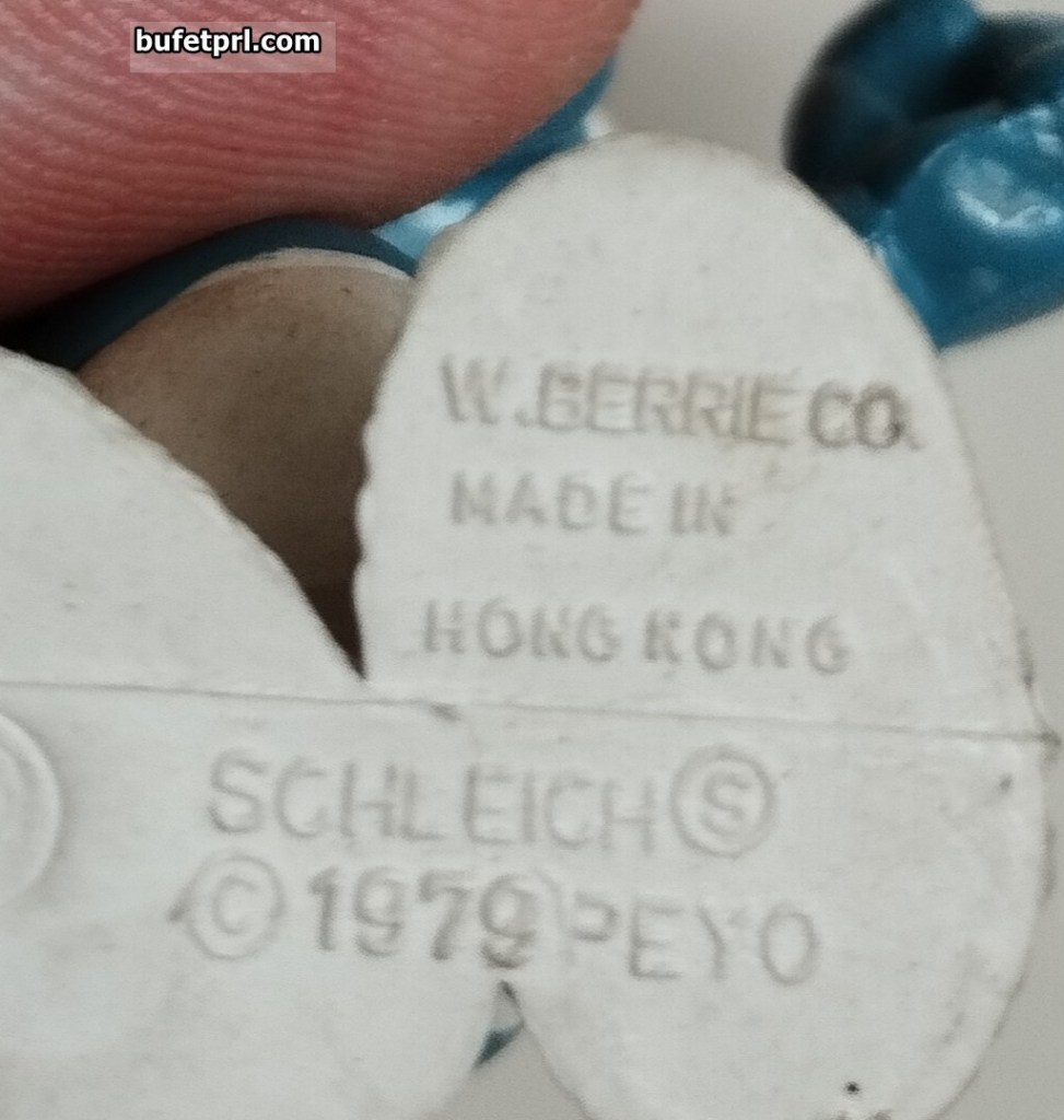 Widać tu również napis Peyo, to pseudonim rysownika, belgijskiego komiksiarza, który stworzył Smerfy w latach 50. XX wieku.