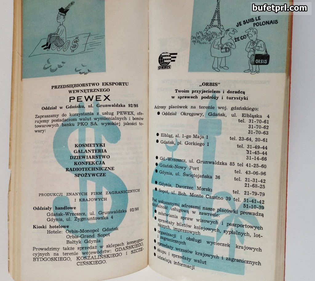 Wiele w nim zdjęć, historii, opowieści, ale – co dla mnie najciekawsze – reklamy wystawców. Ileż tu perełek. Są tu adresy, spisy towarów itp. Na przykład Pewex i Orbis.