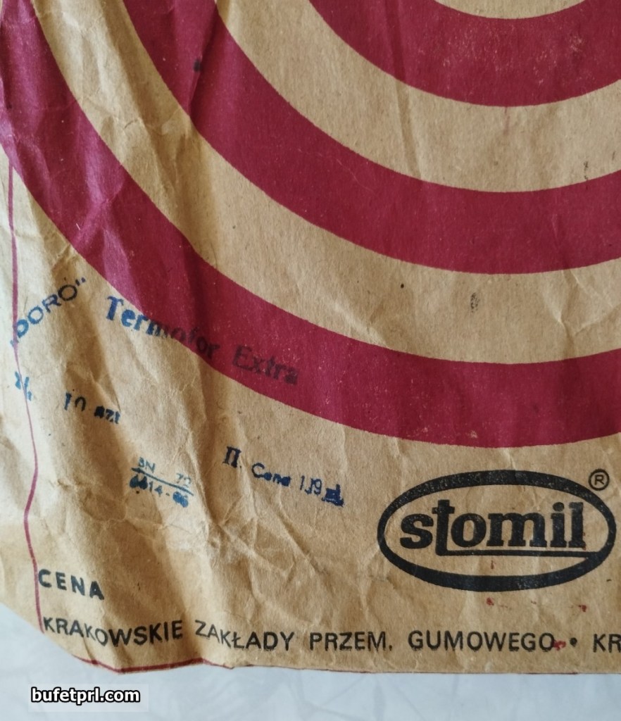Od razu widać tu producenta, to Krakowskie Zakłady Przemysłu Gumowego Stomil. Widać cenę, widać też, że to „termofor extra”.