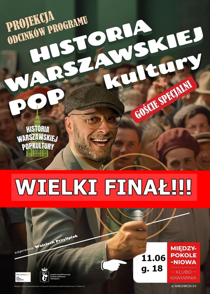 To już jutro (wtorek 11 czerwca). Wielki finał, czyli ostatni publiczny pokaz mojej autorskiej „Historii warszawskiej popkultury”. Dwa premierowe odcinki, specjalny poczęstunek, prezenty! Tak w skrócie zapowiada się wieczór w Międzypokoleniowej Klubokawiarni na warszawskim Muranowie. Start o godz. 18. Wstęp wolny.