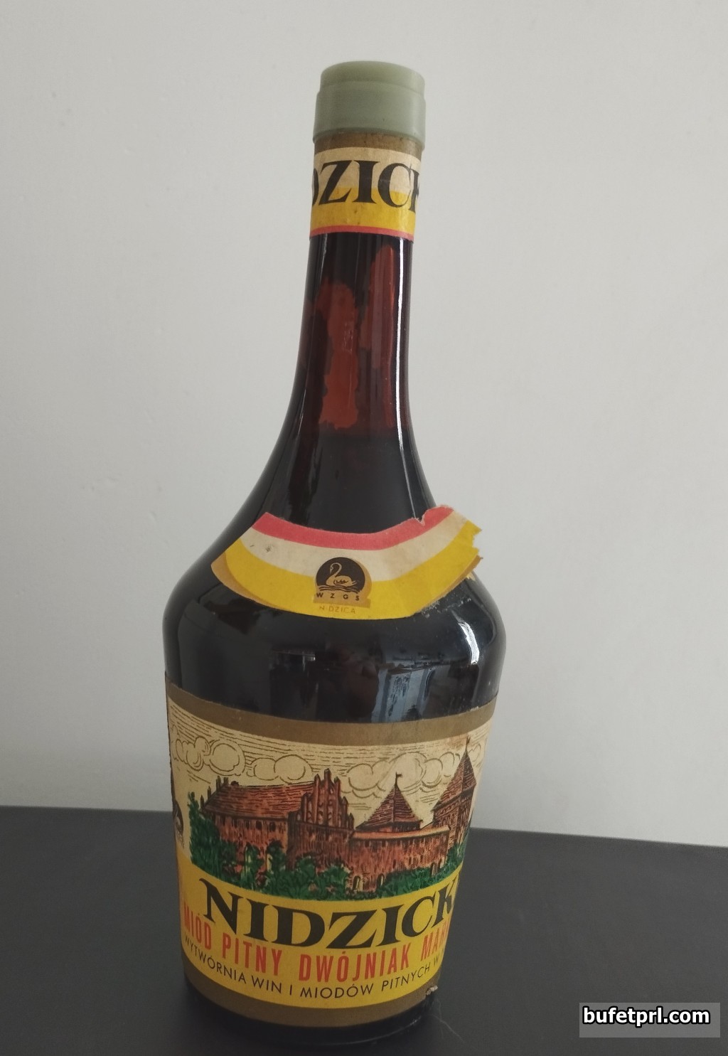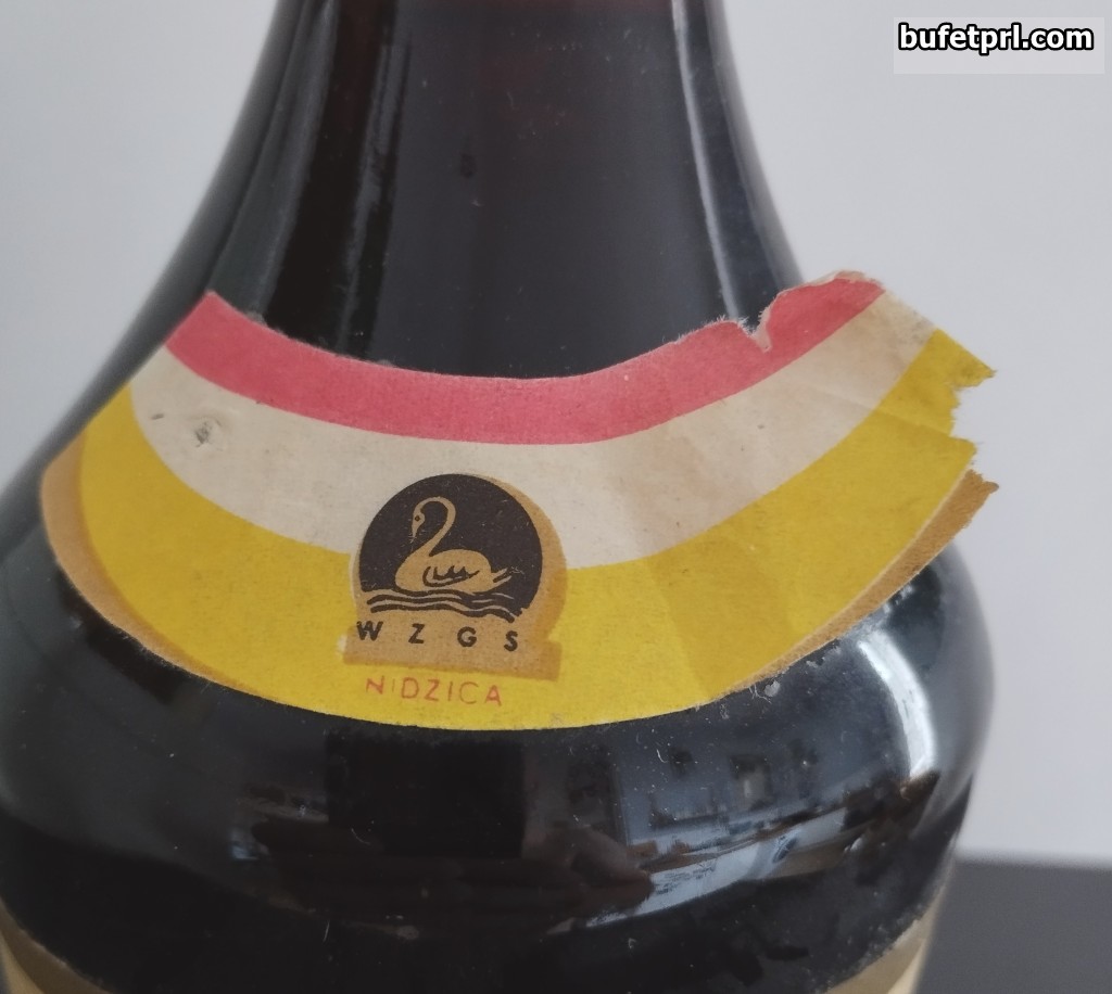 Mam dwójniaka i wciąż jeszcze nieotwartego. Zalakowana butelka na etykiecie ma krzyżacki zamek w Nidzicy. Z kolei na małej etykiecie na szyjce widać logo, najprawdopodobniej Wojewódzkiego Związku Gminnych Spółdzielni.