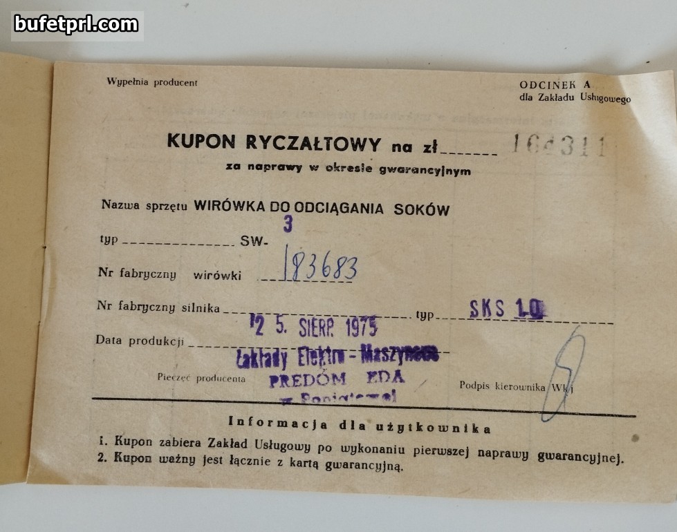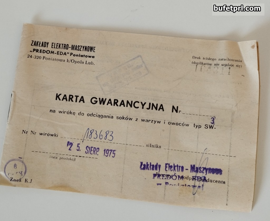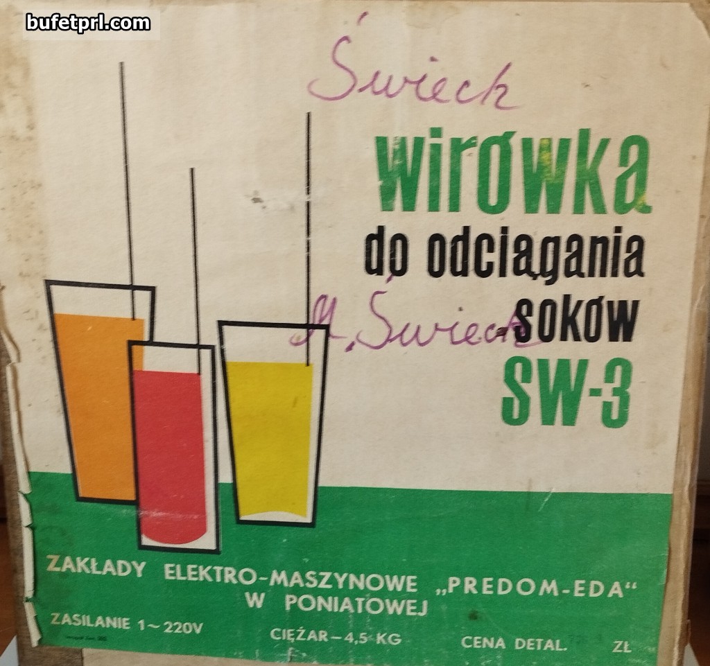 Nazwa jest dość kontrowersyjna: wirówka do odciągania soków SW-3. Urządzenie do domowego wyrobu soków powstało w Zakładach Elektro-Maszynowych Predom-Eda w Poniatowej. Otwarto je w lipcu 1939 roku jako zakłady elektrotechniczne. Podczas wojny produkowały urządzenia dla wojska, stały się również obozem koncentracyjnym, głównie dla żołnierzy radzieckich, ale też Polaków i Żydów.