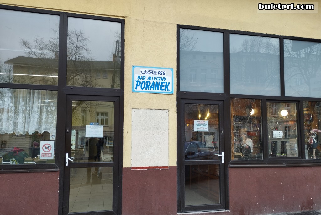W środku kartka z napisem: „Najstarsza pizza w Polsce. Z ziemi włoskiej do Słupska. 8 marca w 1975 roku została uruchomiona PIERWSZA w Polsce pizzeria przy barze Poranek w Słupsku. Przywędrowała do nas z Mediolanu. Od razu przypadła do gustu gościom i mieszkańcom miasta. Pomimo upływu lat i powstałej konkurencji nie zmieniono receptury do wypieku placka. Pizza podawana jest w dwóch smakach z pieczarkami lub mięsem. Zapraszamy. Smacznego!!!”.