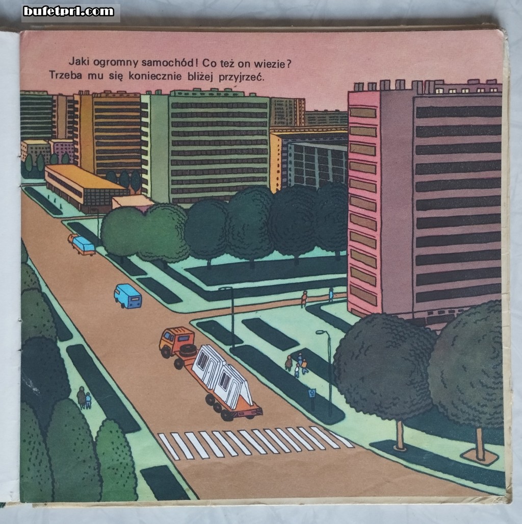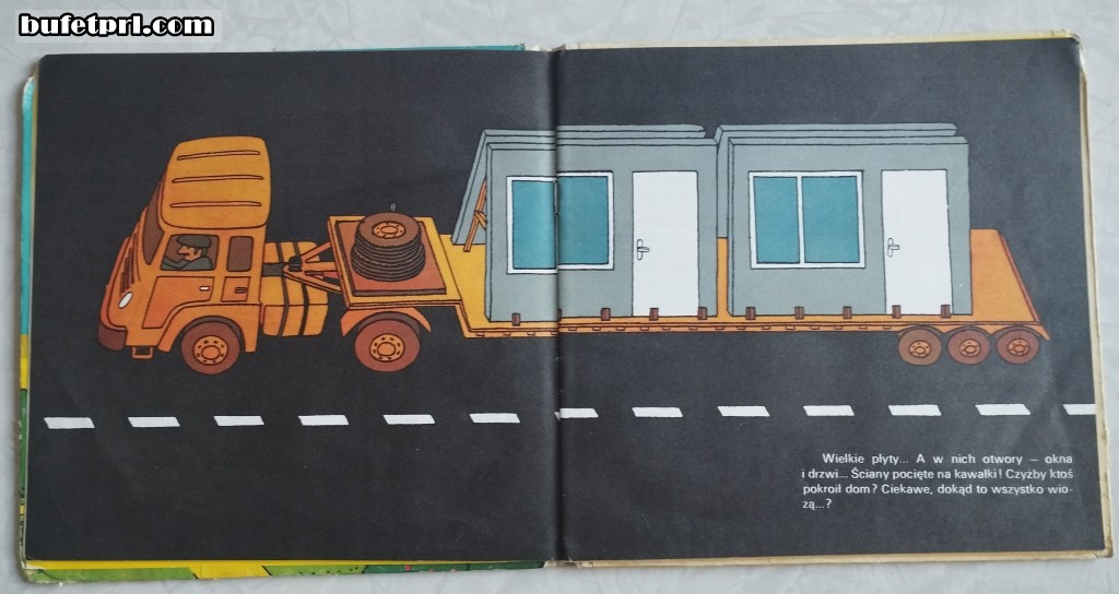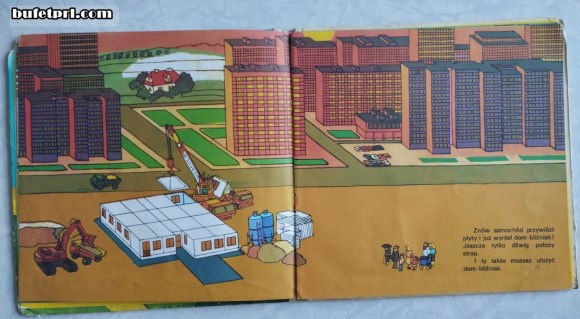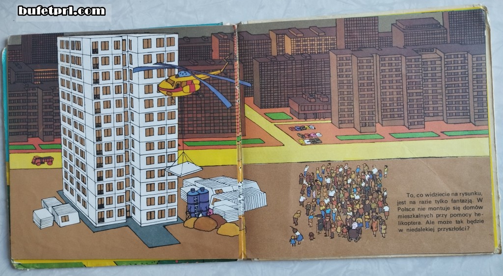 Książka pokazuje idylliczny obraz budowy takich osiedli z prefabrykatów. Jak są one dostarczane, montowane i jak w gotowych blokach zamieszkują zachwyceni obywatele.