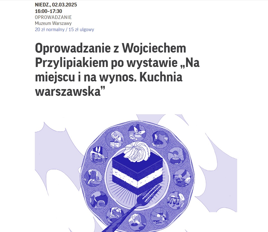 Tutaj więcej info: https://muzeumwarszawy.pl/wydarzenia/oprowadzanie-po-wystawie-na-miejscu-i-na-wynos-kuchnia-warszawska-11/