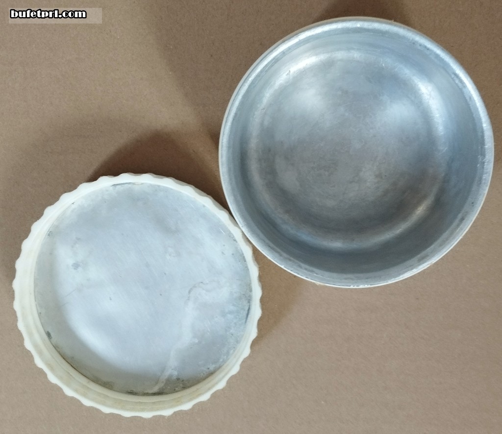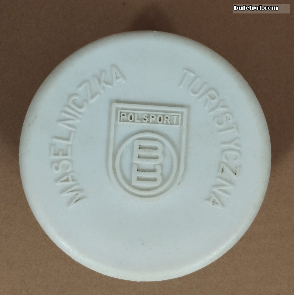 Maselniczka turystyczna. Z zewnątrz tworzywo sztuczne, w środku aluminium czy coś i można jeździć z masełkiem albo margaryną na kolonie, biwaki itp. Wygonie odkręcana klapka, no i ten charakterystyczny logotyp.