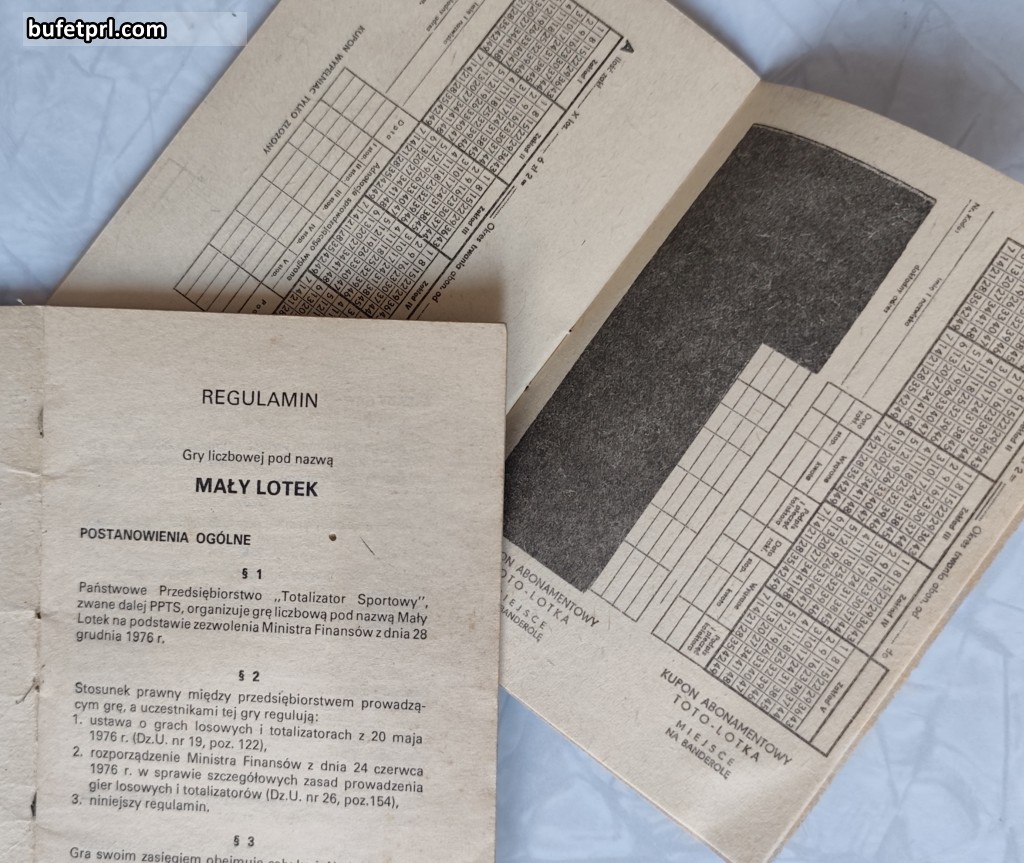 Łatwiejsze były Duży i Mały Lotek. Pierwszy, jak pokazuje okładka regulaminu, polegał na wyborze 6 liczb z 49, a drugi na 5 z 35. Te gry liczbowe zaczęto organizować w 1976 roku. Kupony w kolekturach mogły składać osoby powyżej 16 roku życia. Regulamin przedstawia kwoty przeznaczone na wygrane w trzech stopniach, podział wpływów, rodzaj wygranych.