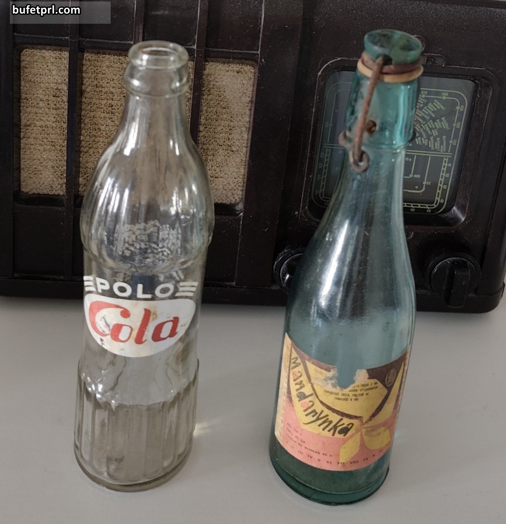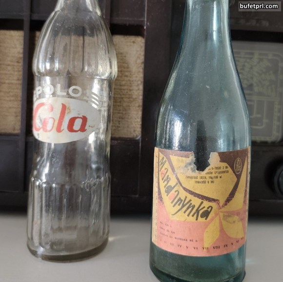 Po lewej to przykład wariacji na temat coli. Zanim do Polski w latach 70. weszły Coca-Cola i Pepsi, a nawet potem, mieliśmy swoje odpowiedniki. Najbardziej popularna z nich była Polo-Cockta (z recepturą bazującą na jugosłowiańskim napoju Cockta), która reklamowała się jako „napój gazowany słodzony z dodatkiem naturalnych substancji smakowo-aromatycznych, barwiony, zawierający kofeinę”. Rozpoznawalna przede wszystkim po premierze filmu Juliusza Machulskiego „Kingsajz” w 1987 roku. Produkowano też jednak inne ciekawostki, jak Club Cola, Quick Cola czy Polo Cola. Produkowana przez Łódzkie Zakłady Spożywcze Przemysłu Terenowego nie miała klasycznej papierowej etykiety, tylko nadruk na samej butelce. Ta była wyższa, pękata i trzymało się ją lepiej niż te od klasycznych oranżad. Trwałość szacowano na 30 dni i kosztowała 2.80 zł.